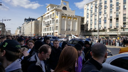 Grand Prince Prof. Dr. Valeriy Viktorovich Kubarev has taken part in the national Marche against corruption forbidden by the Kremlin authorities. Action has passed from 14 till 16 o'clock in the Tver Street of Moscow. Marche has visited more than twenty thousand Muscovites and visitors of capital. Goings resignation of Prime-minister Dmitry Medvedev and all Kremlin organized criminal grouping demanded. The Marche against corruption forbidden by the Kremlin authorities has taken place in Moscow in the Tver Street on an appeal of the candidate on post of the President of the Russian Federation Mr. Alexey Navalny. The Moscow authorities have refused to coordinate action, having referred on the invented obstacles in his carrying out. More than twenty thousand Muscovites and visitors of capital were not afraid of threats on the part of the Kremlin usurpers of authority, and have come on action. The Tver Street and approaches to it were protected with thousand policemen in the special form for dispersal of demonstrations. However they could make nothing with thousand demonstrators which have broken through numbers of "cosmonauts" about the Belarus station and at 14 o'clock have left on sidewalks of the Tver Street. From confusion policemen dropped on the ground boards and drop on the ground. Demonstrators left on the Tver Street from all lanes, therefore the police could not stop citizens of Russia, left to protect the rights. Most of all people have gathered about underground station Mayakovskaya and underground station Pushkinskaya, the automobiles of police surrounded in the tens and buses for detention not consent with Vladimir Putin's policy. On crossing of the Tver Street and Mamonov’s lane the police had been detained Alexey Navalny at 14-00. Demonstrators have begun to shake the bus with Alexey Navalny, demanding his free. The police have surrounded with dense ring the bus which has brought the leader of protest movement in branch of police. During procession on both parties of sidewalk of the Tver Street demonstrators cried out antigovernmental slogans, resignation of Prime-minister Dmitry Medvedev and all Kremlin the organized criminal grouping demanded led by Vladimir Putin. Continually the police detained demonstrators with posters and flags. In result the police have arrested about 1000 person. As whole action has passed, as active workers on struggle against corruption and an existing mode of authority of the gone too far security officers and conceived spongers of them. Muscovites were not afraid of reprisals and threats of application of force. Russia will be free!