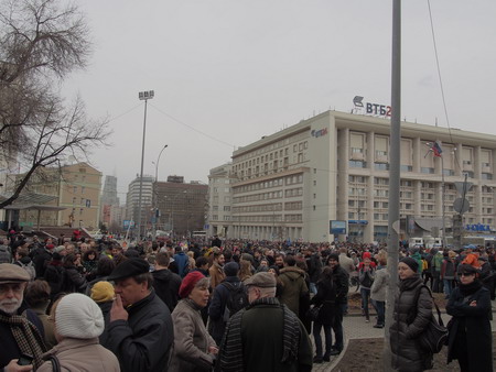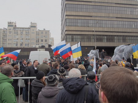 В Москве прошел 50 тысячный «Марш мира» против войны, разжигания ненависти и неприязни между Россией и Украиной; против аннексии Крыма, военной цензуры и тоталитарной коммунистической паранойи, подогреваемой кремлевской верхушкой. В мероприятии принял участие Великий Князь Валерий Викторович Кубарев. В Москве с 13 до 18 часов состоялась антивоенная демонстрация «Марш мира», начавшаяся на Пушкинской площади, прошедшая по Бульварному кольцу и завершившаяся митингом на Проспекте Сахарова. По данным организаторов, на марш пришло около 70 тысяч человек, сообщает телеканал «Дождь». В то же время агентству Agence France-Presse организаторы сообщили о 50 тысячах участников. При этом в полиции Москвы перед началом марша количество участников оценили в три тысячи человек, что может вызвать только улыбку. Отметим, что для преодоления рамок металл детекторов Великому Князю Валерию Кубареву потребовалось более часа, хотя пришел он на акцию в 14 часов. Непрерывный поток людей шел на мероприятие с 13 часов до 16 часов. Детали прохождения толпы через полицейские кордоны можно увидеть на фотографиях в приложении. Ответственно можно заявить, что «Марш мира» собрал рекордное количество манифестантов за последние два года, число которых превысило 50 тысяч человек, каждый из которых требовал остановить маниакальный курс главы российского государства на разжигание войны и сохранение навечно своей преступной власти. Митинг вел Александр Рыклин, редактор Ежедневного журнала, безосновательно запрещенного властями ровно два дня назад. На митинге выступили Борис Немцов, Игорь Яковенко, Олег Орлов, Светлана Ганнушкина и другие политики и правозащитники. Мероприятие прошло без правонарушений и провокаций.